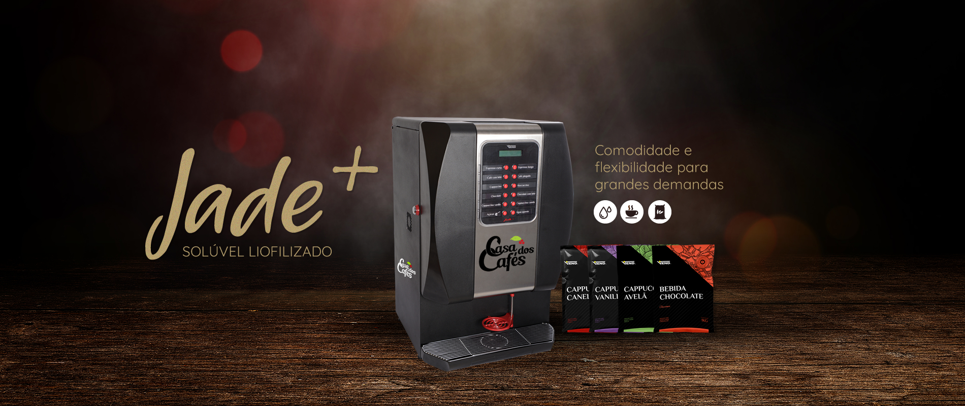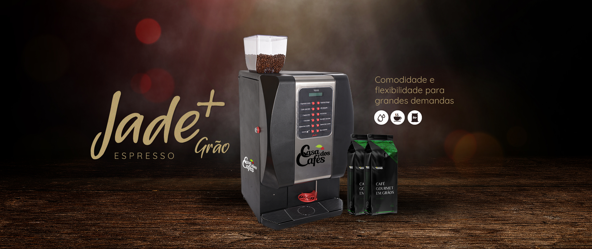 - 1 moedor de café (grãos) e 2 reservatórios para solúveis